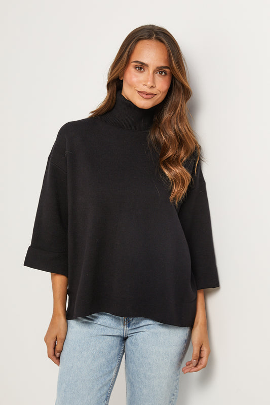 W1011- Pull Col Roulé à Manches Longues
