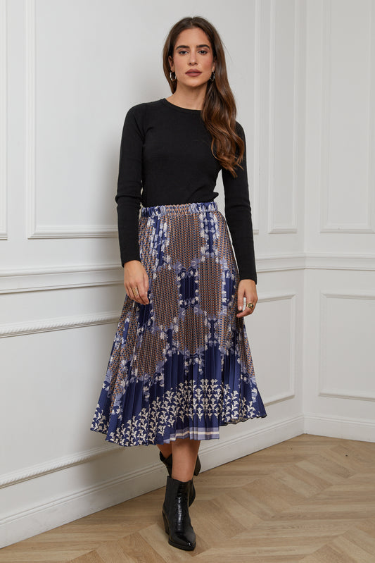 55085-Jupe plissée imprimée, mi-longue