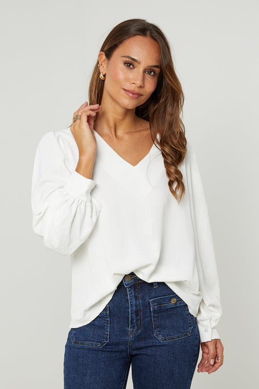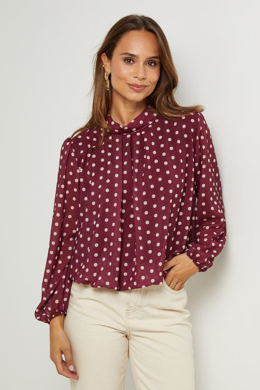 23311-Chemisier imprimé, doublure col avec nœud, manches serrées au niveau du poignet