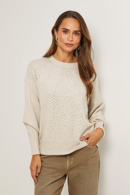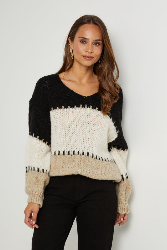 9606 - Pull Col Bateau surpiqué avec Manches Chauve-Souris