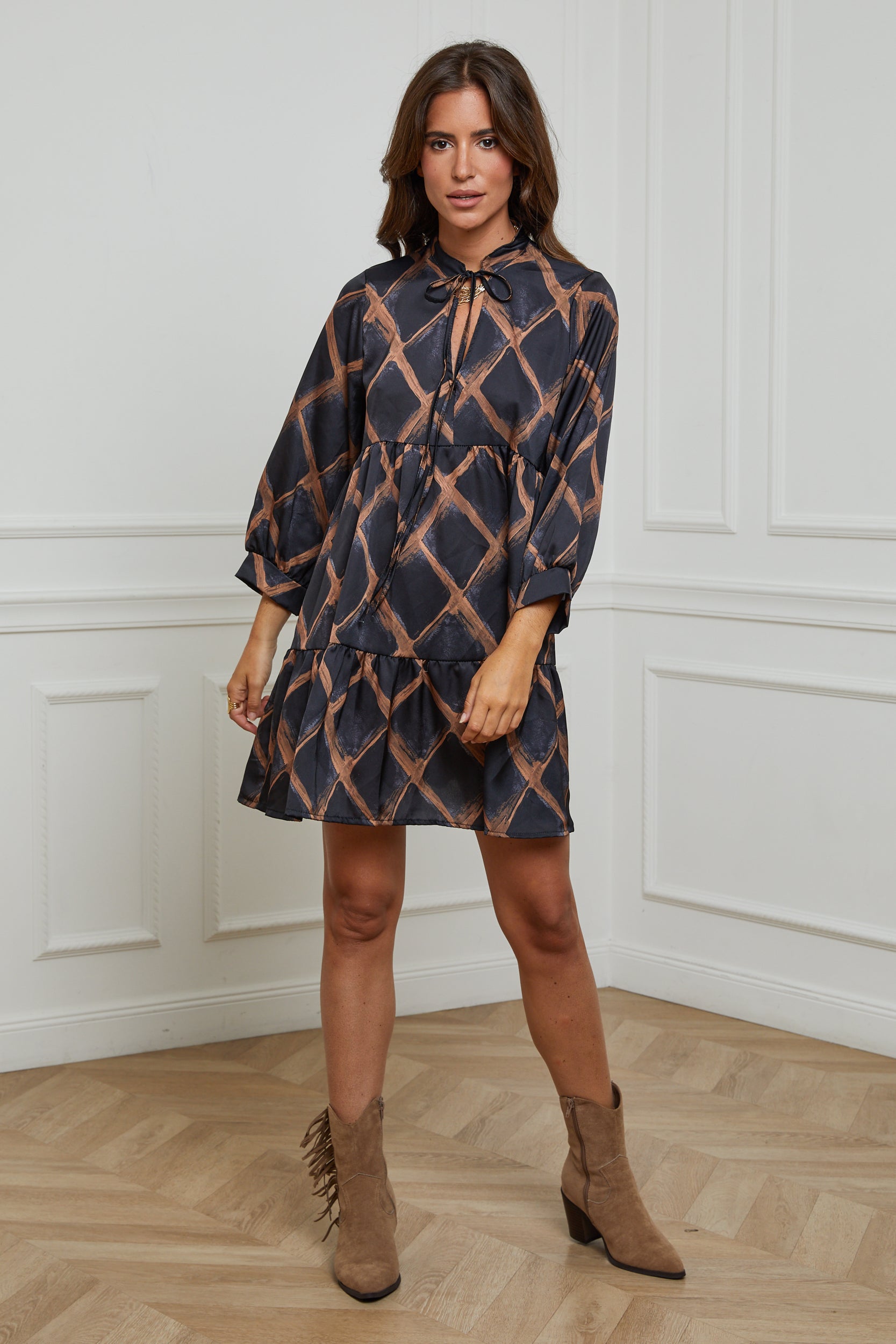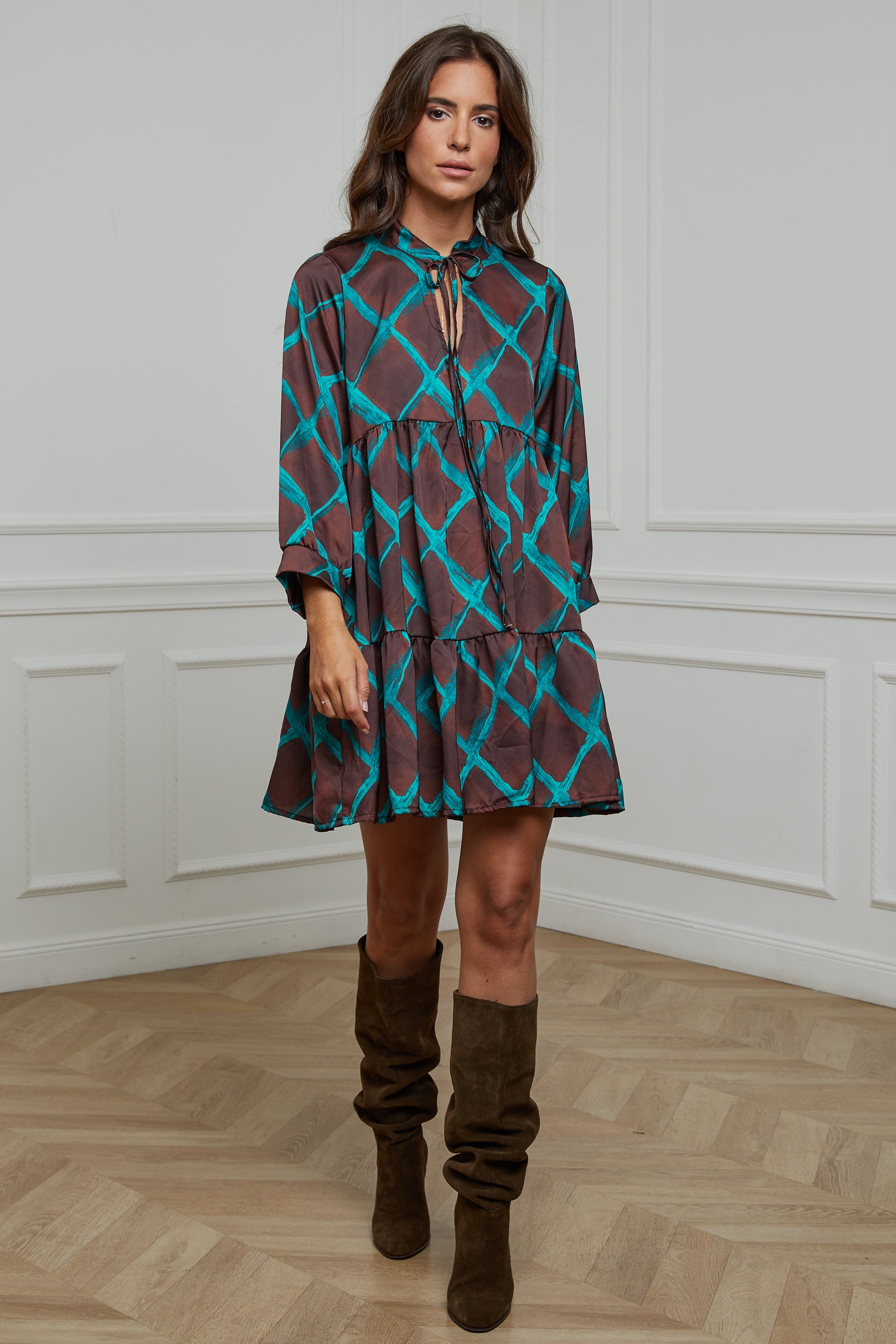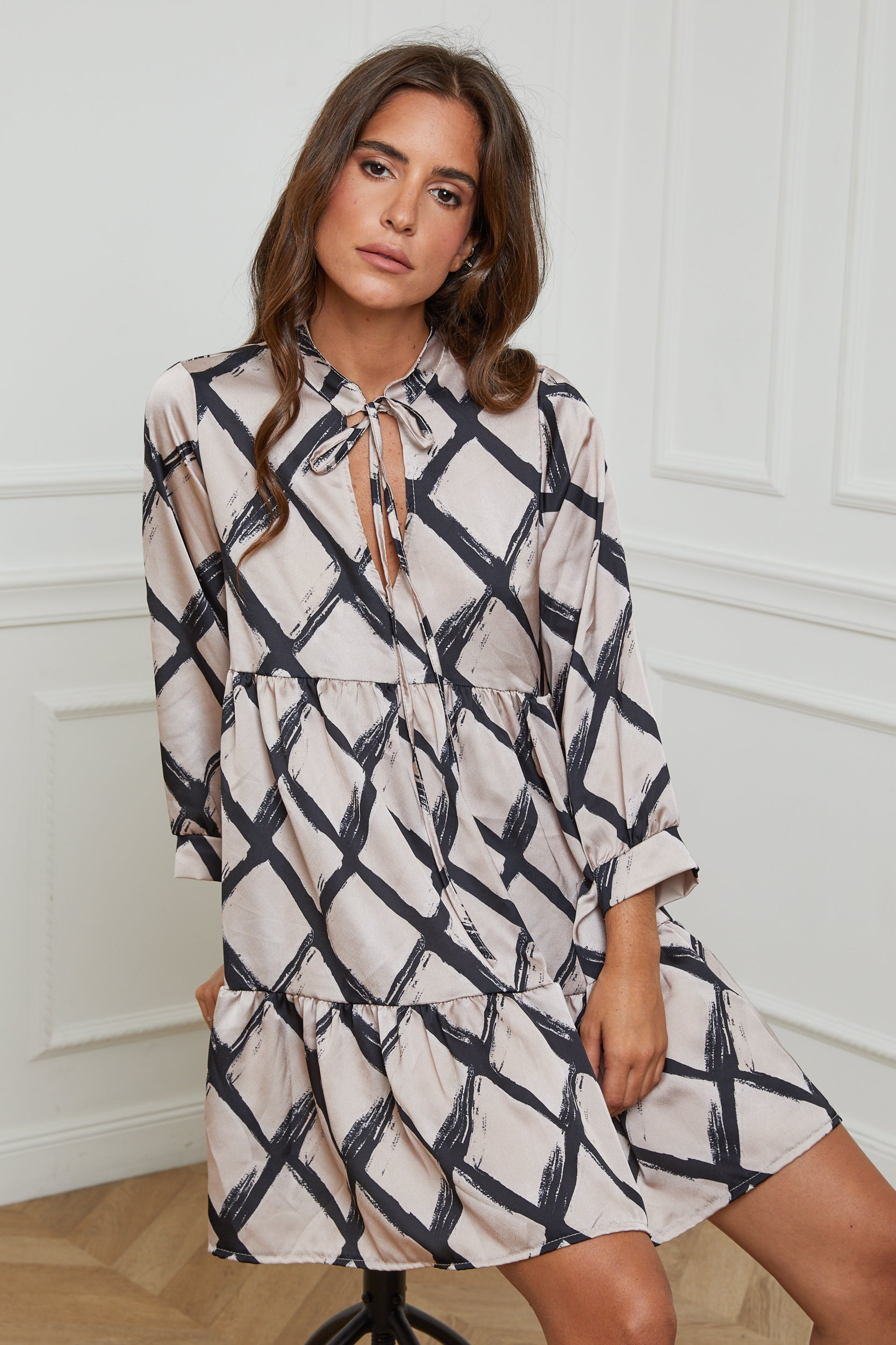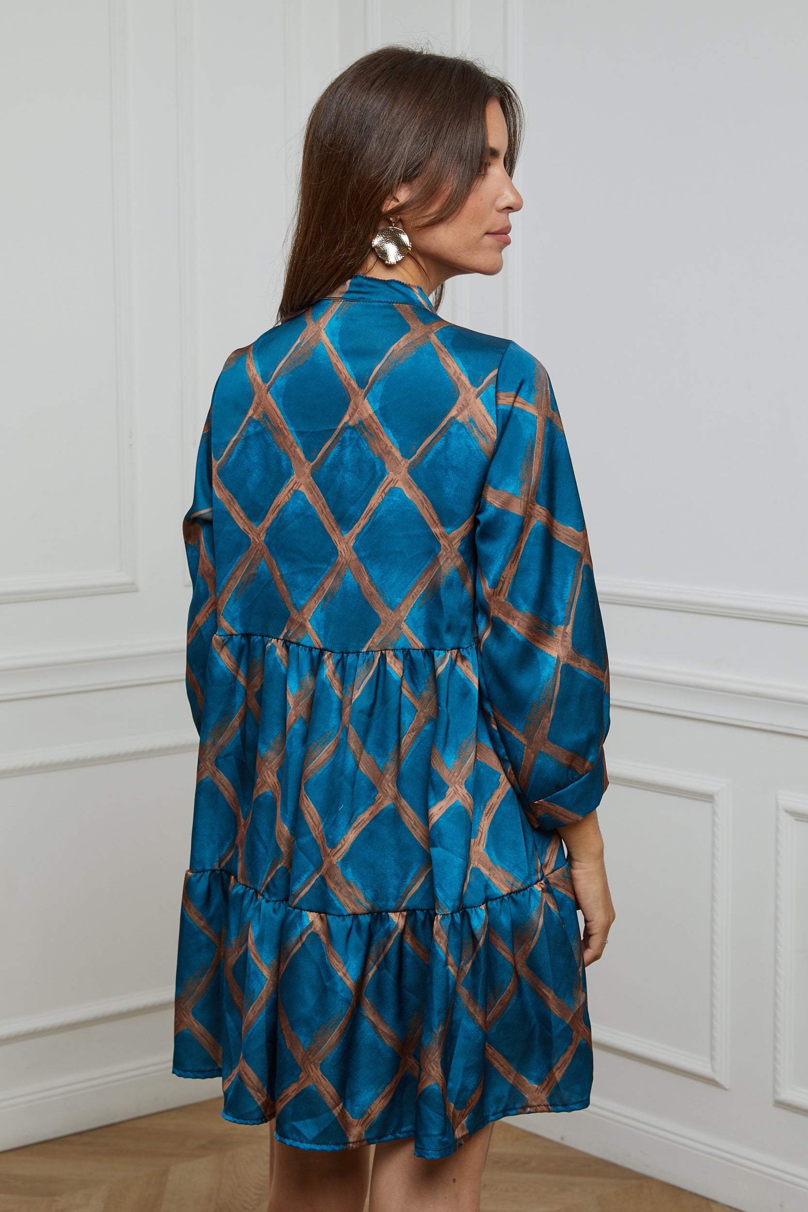 ROBE MI LONGUE IMPRIMEE MANCHE LONGUE COL ROND V AVEC UN NOEUD