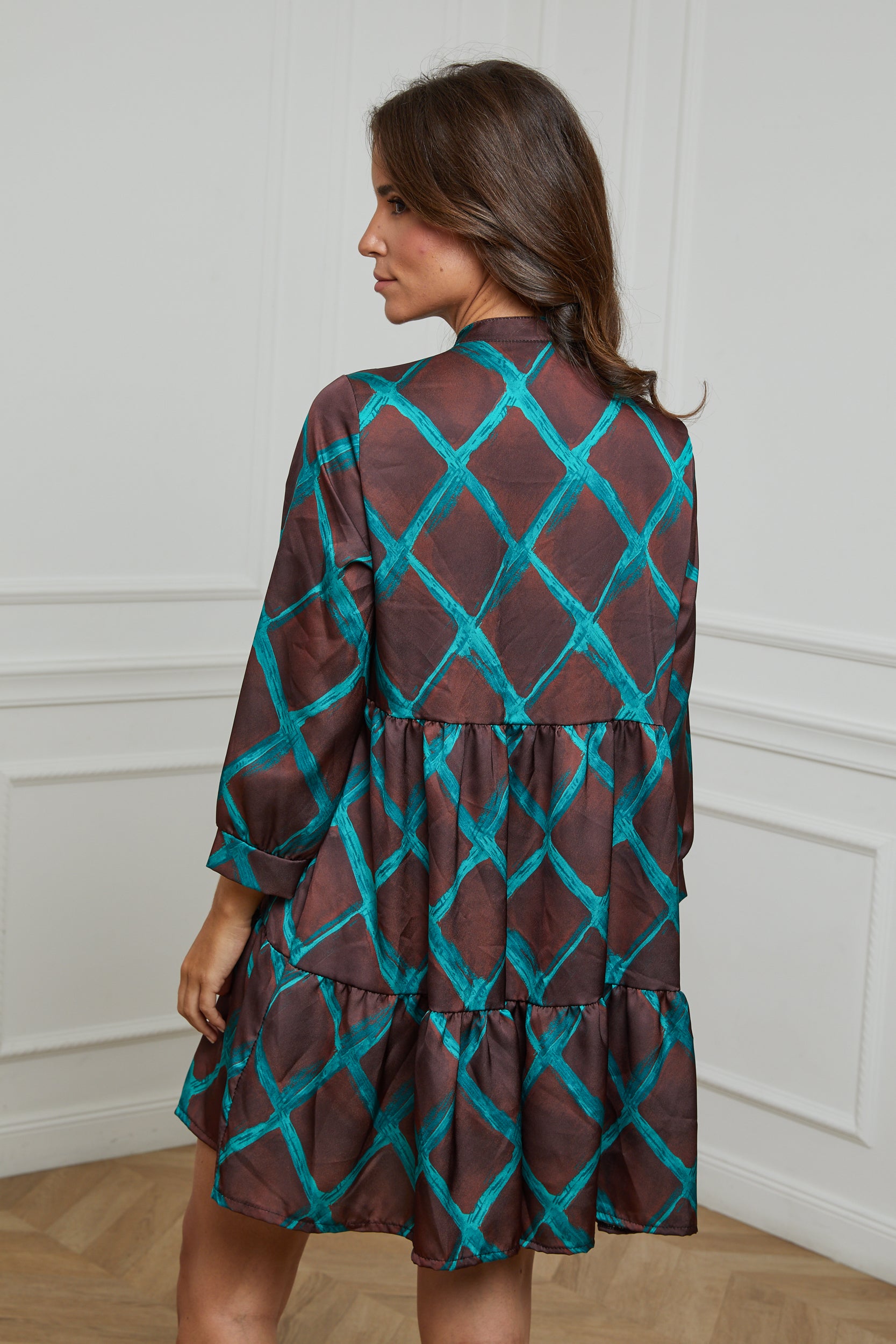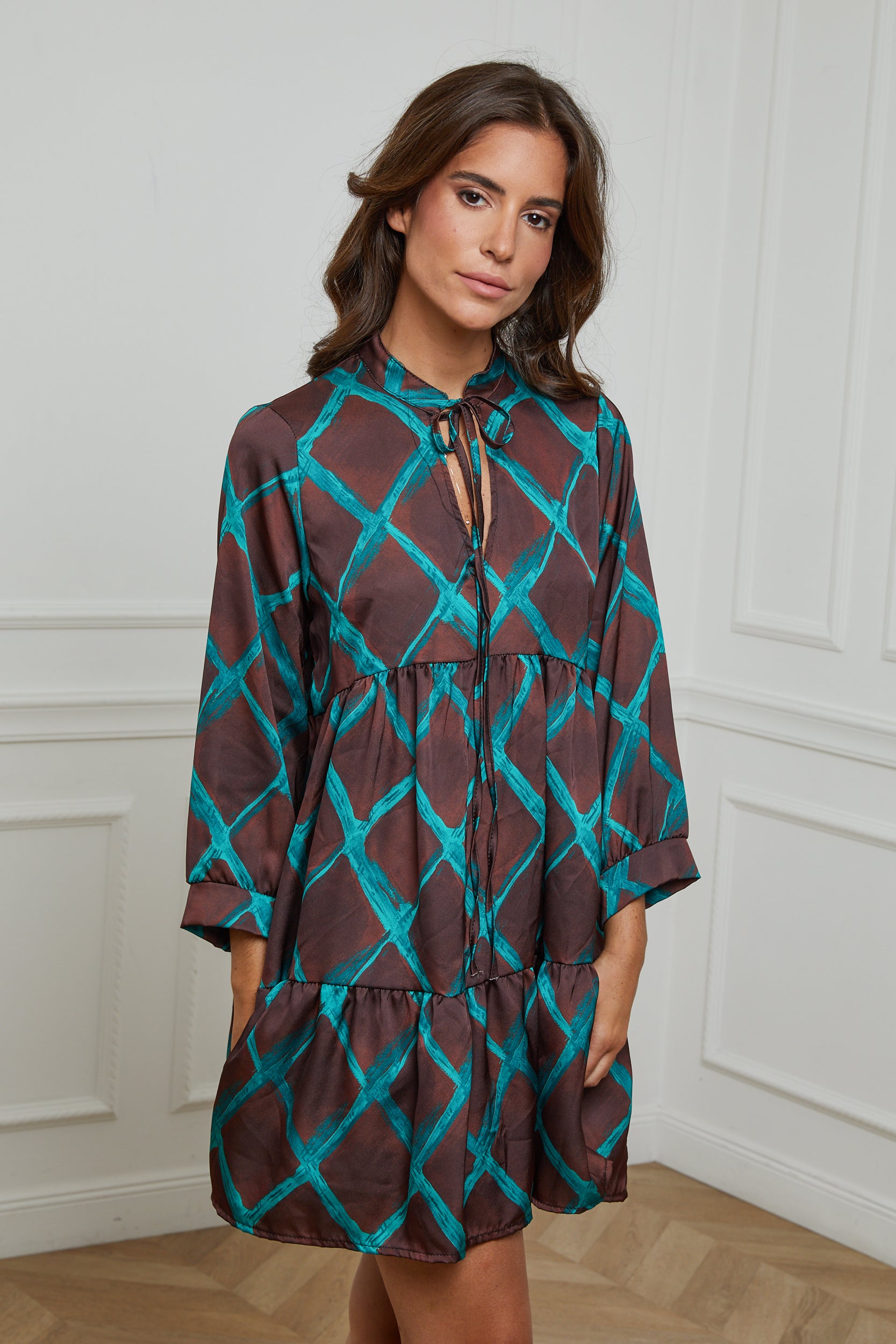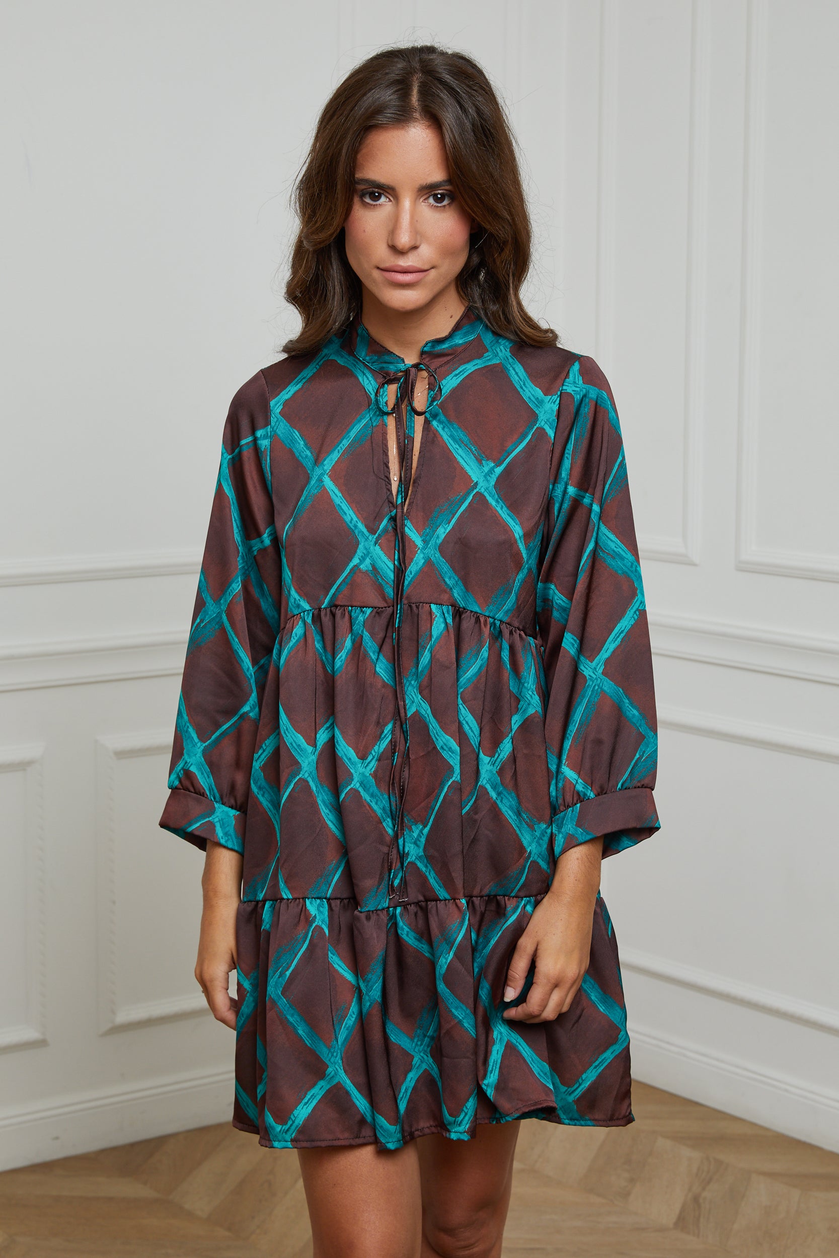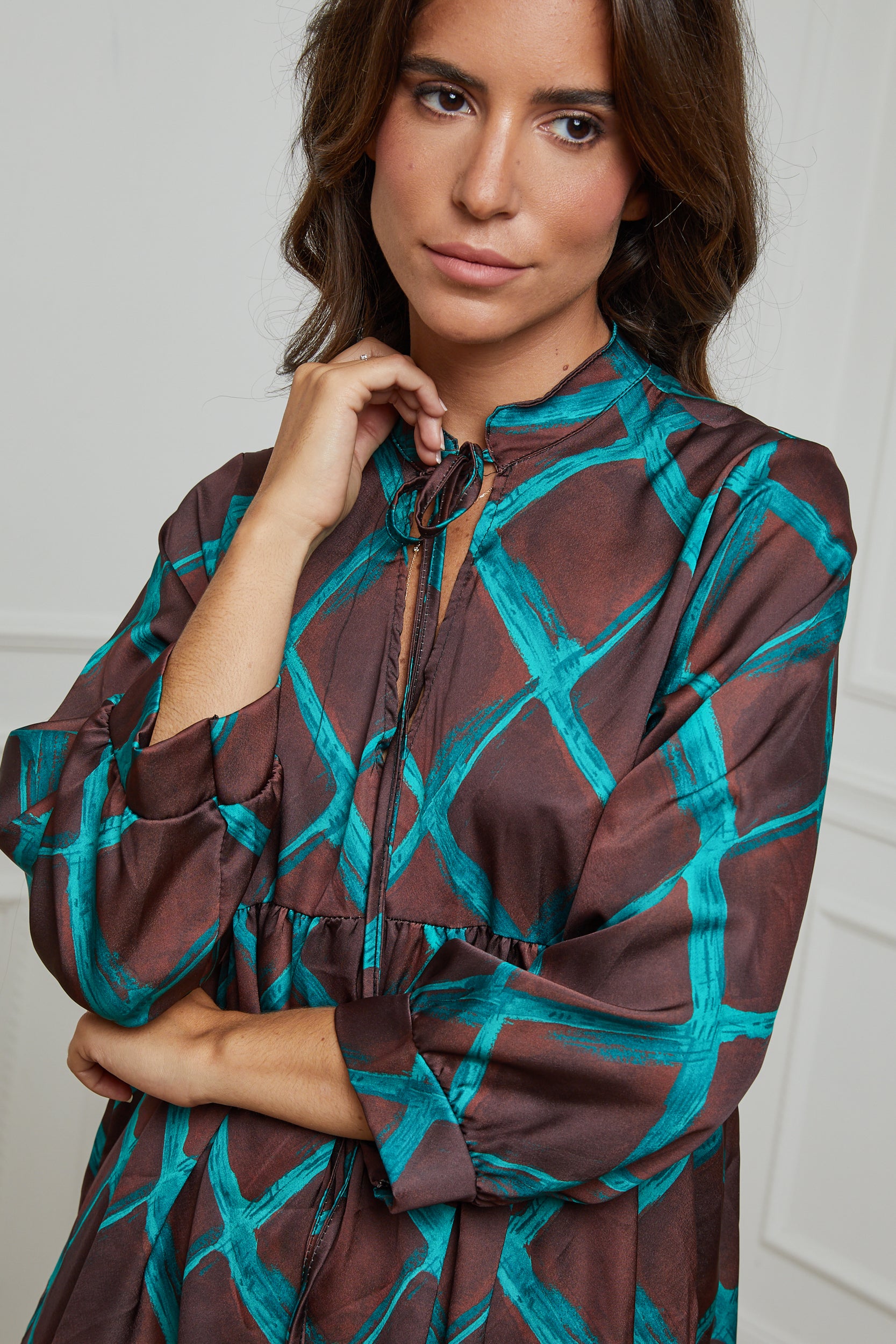 ROBE MI LONGUE IMPRIMEE MANCHE LONGUE COL ROND V AVEC UN NOEUD
