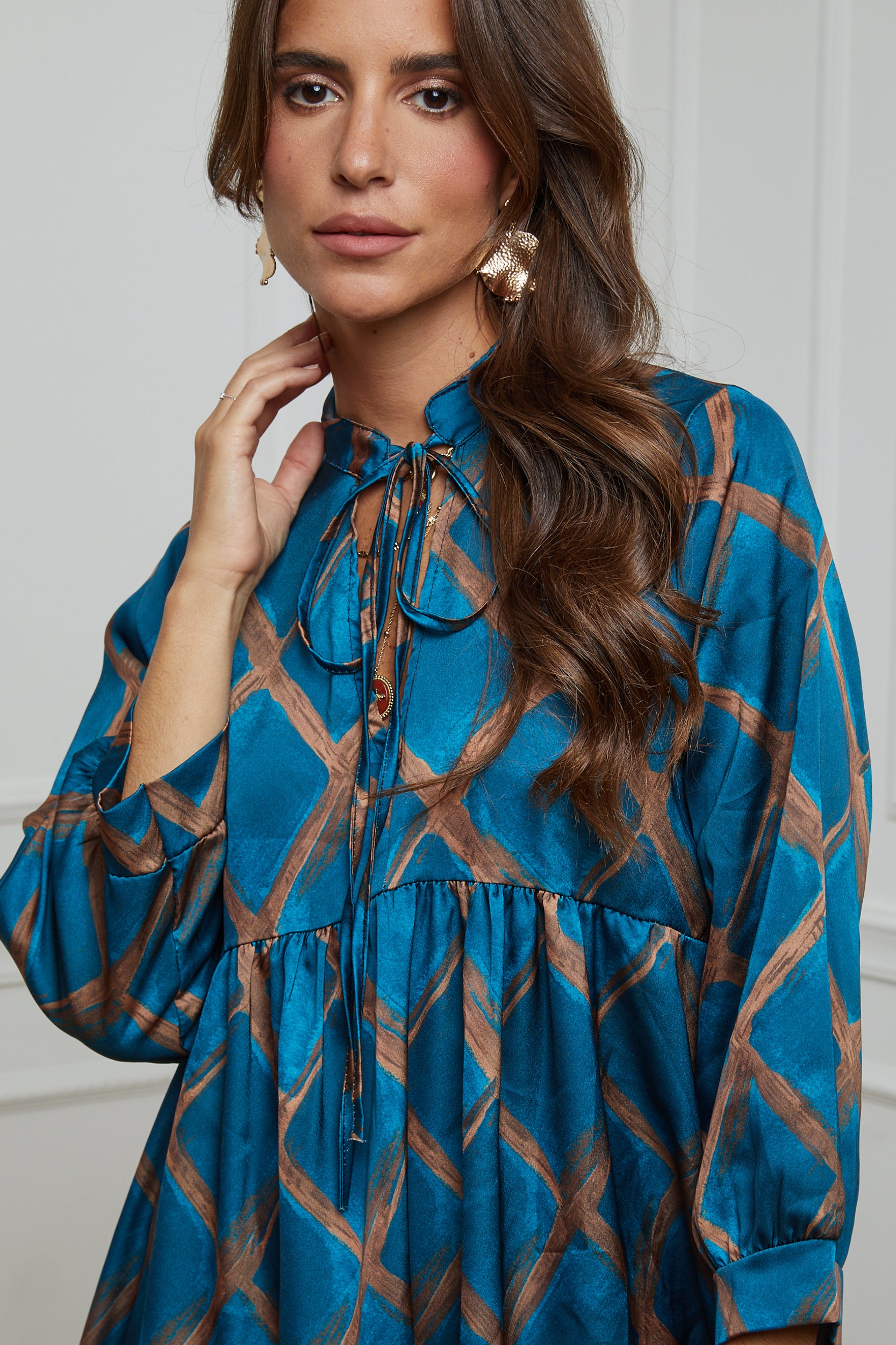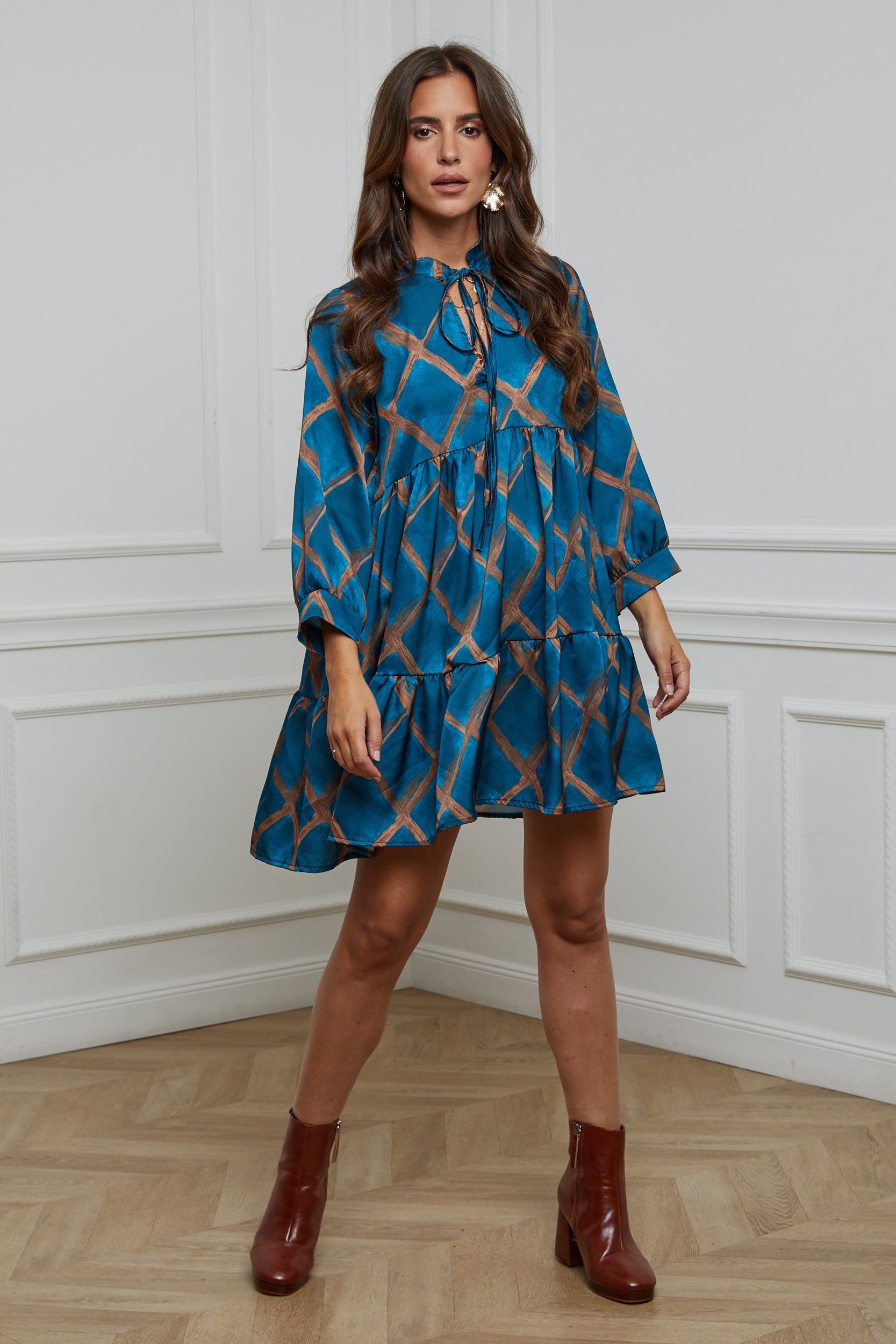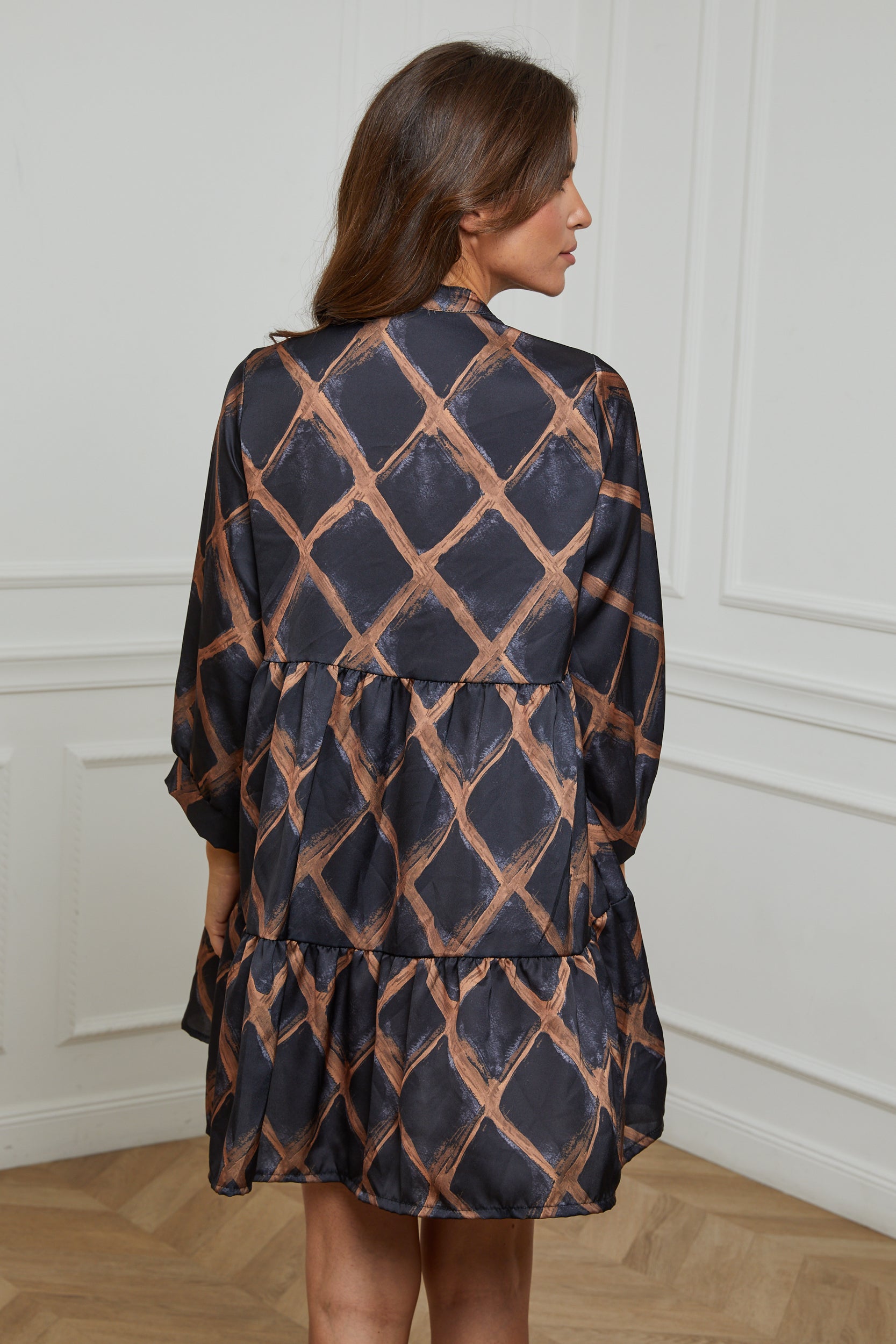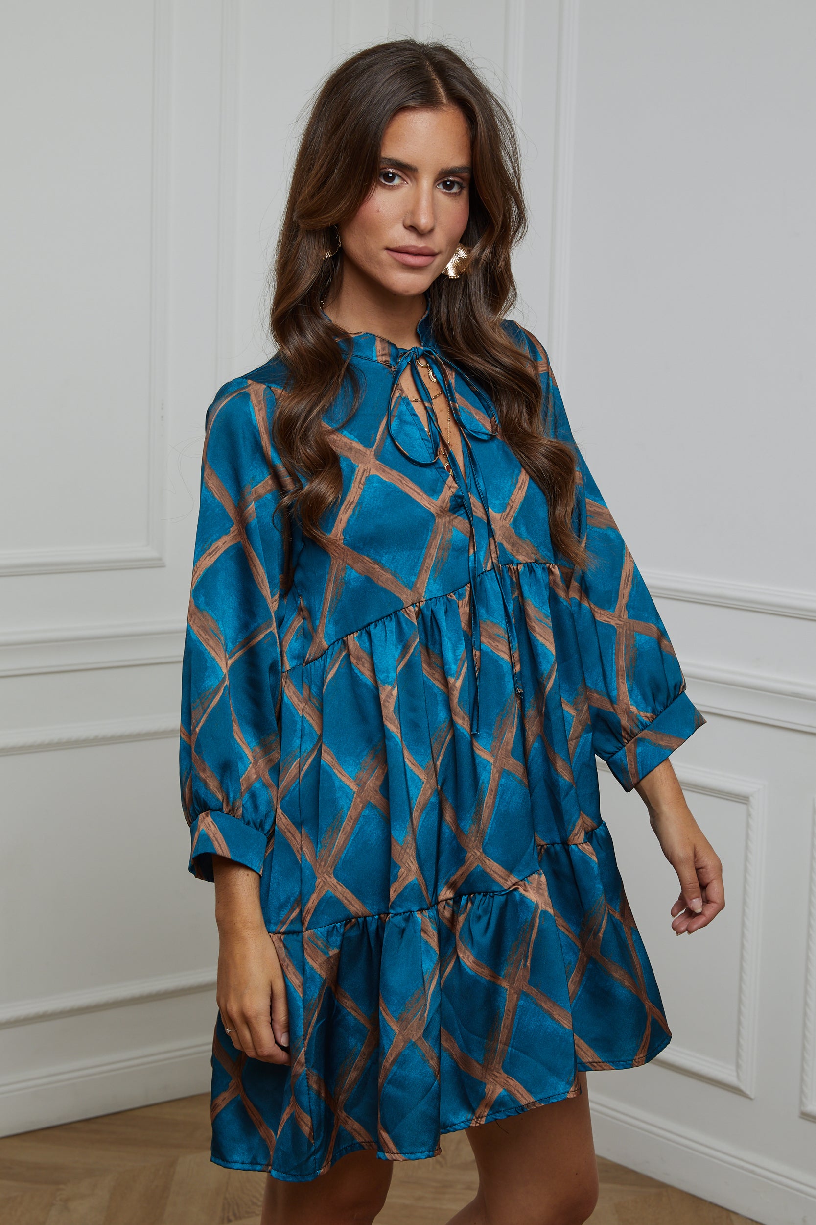 ROBE MI LONGUE IMPRIMEE MANCHE LONGUE COL ROND V AVEC UN NOEUD