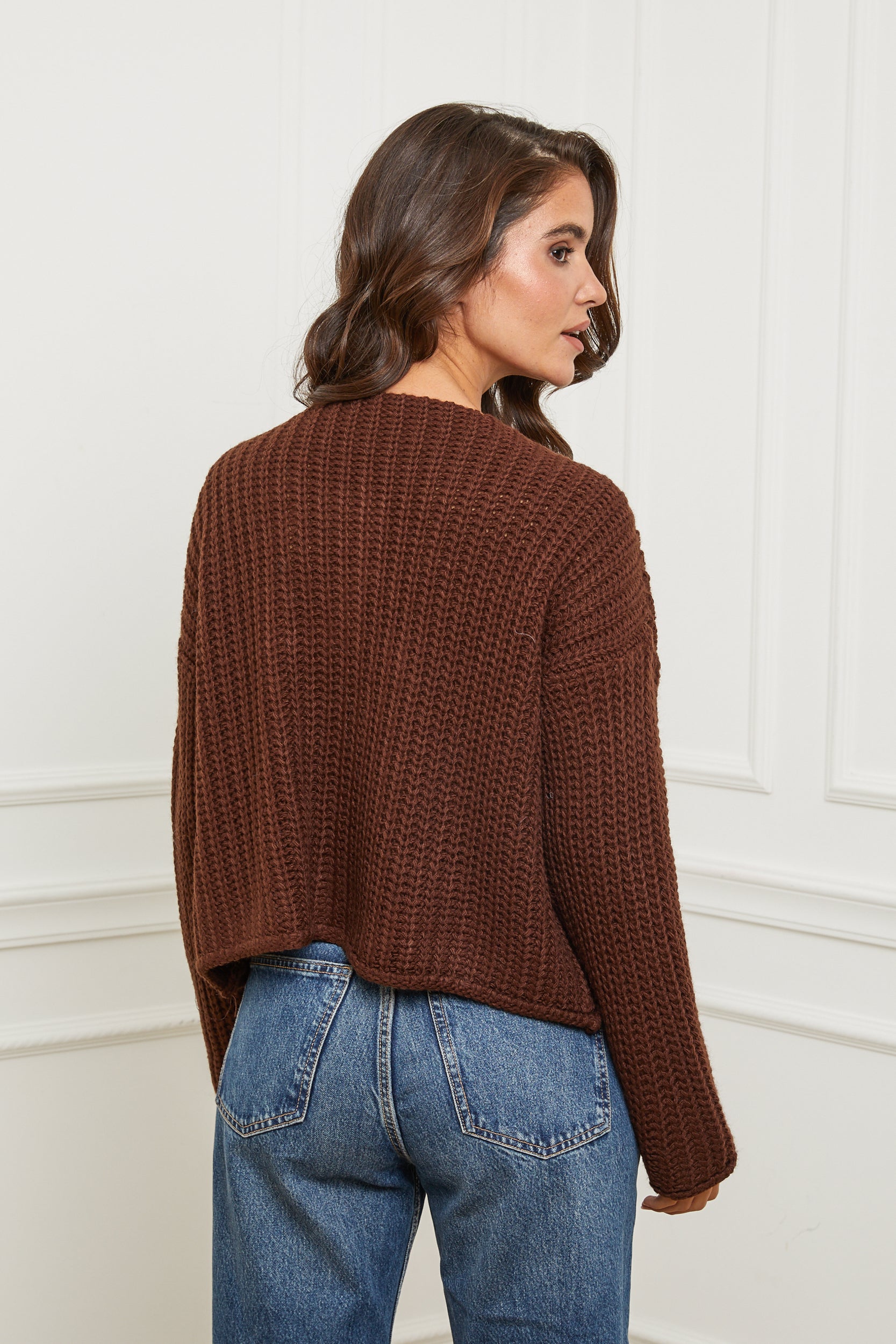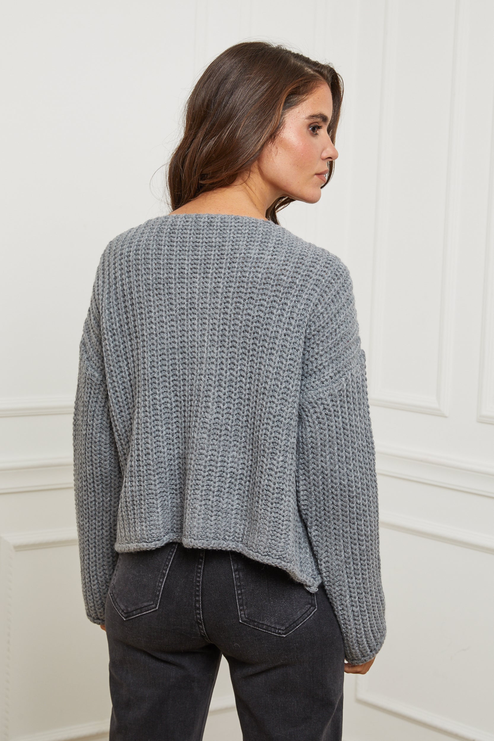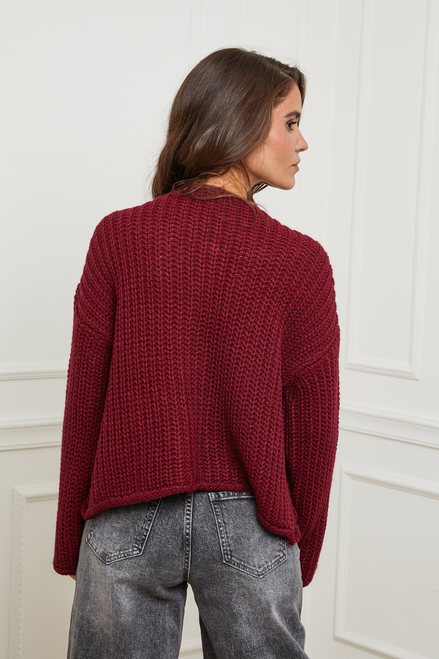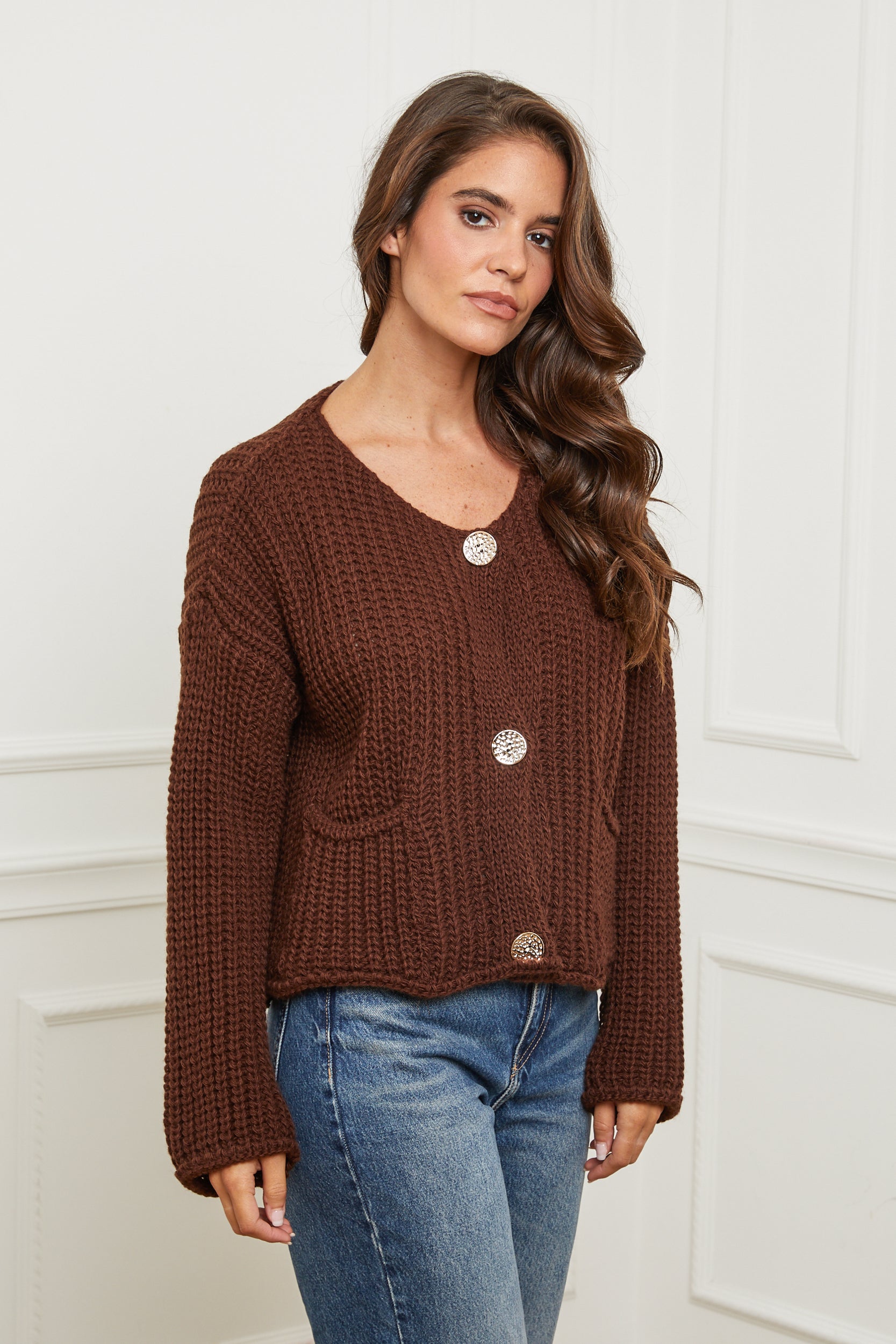 Gilet en maille à manches longues, avec fermeture à trois boutons et deux poches sur le devant