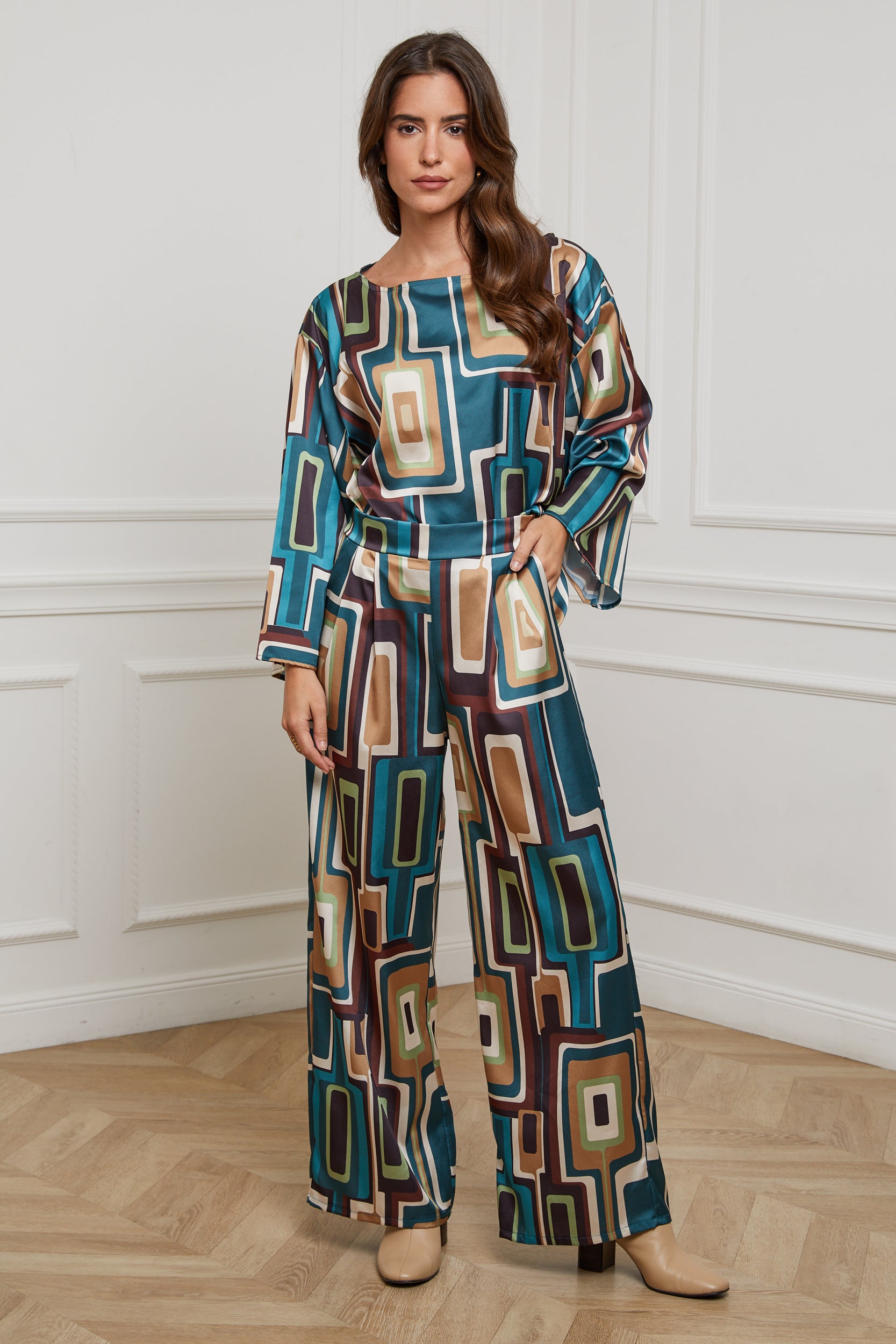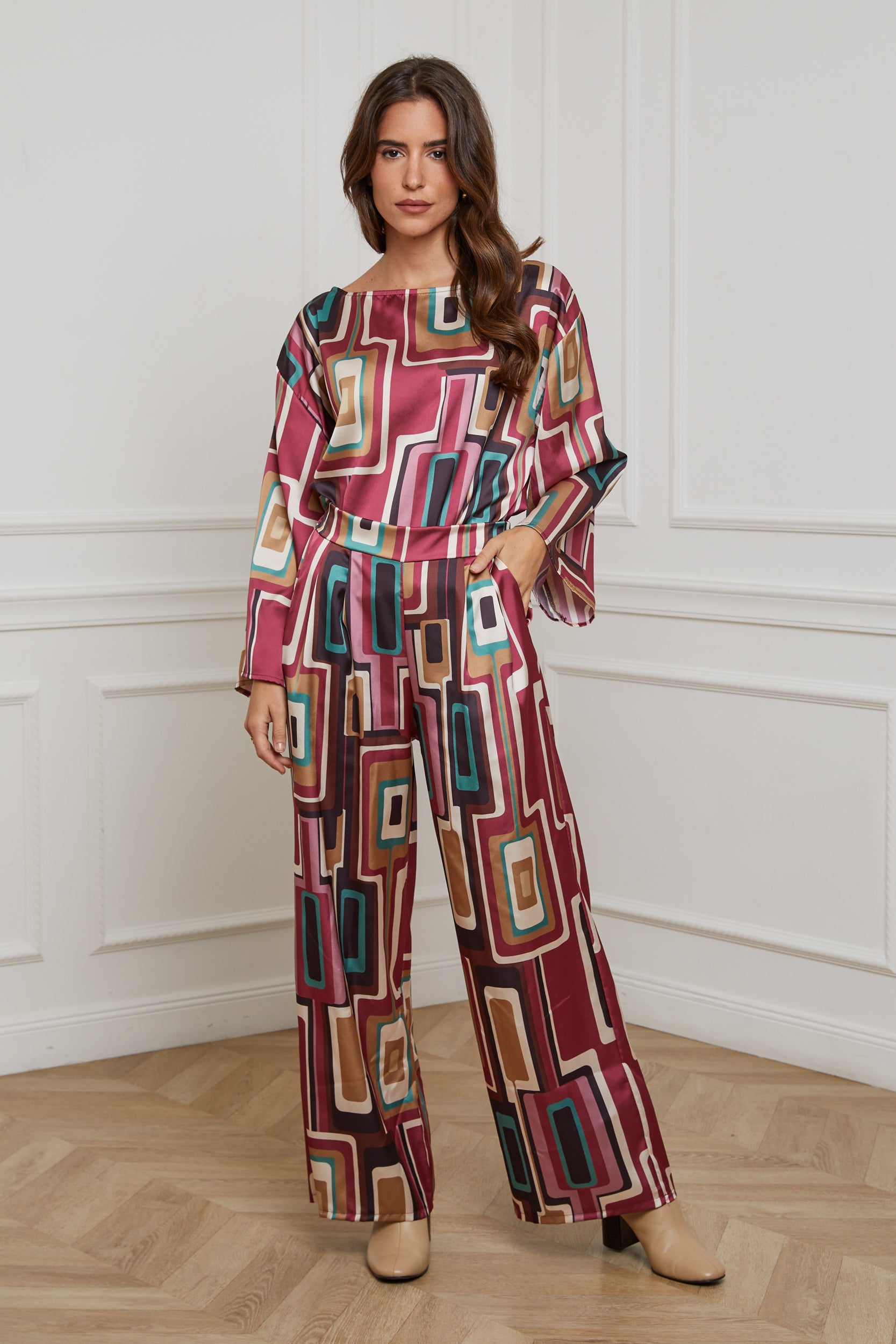 76808-Pantalon tissu imprimé, large avec deux poches latérales